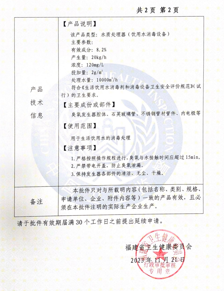 • 臭氧發生器產量及各技術參數簡述